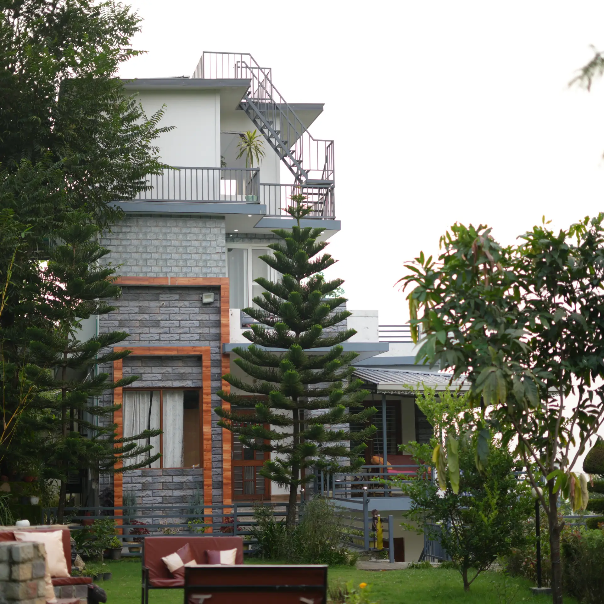 Luxurious privacy ensured with just one room on each floor - private balcony with views of mountains and forests. Interiors designed to make you feel comfortable and especial.